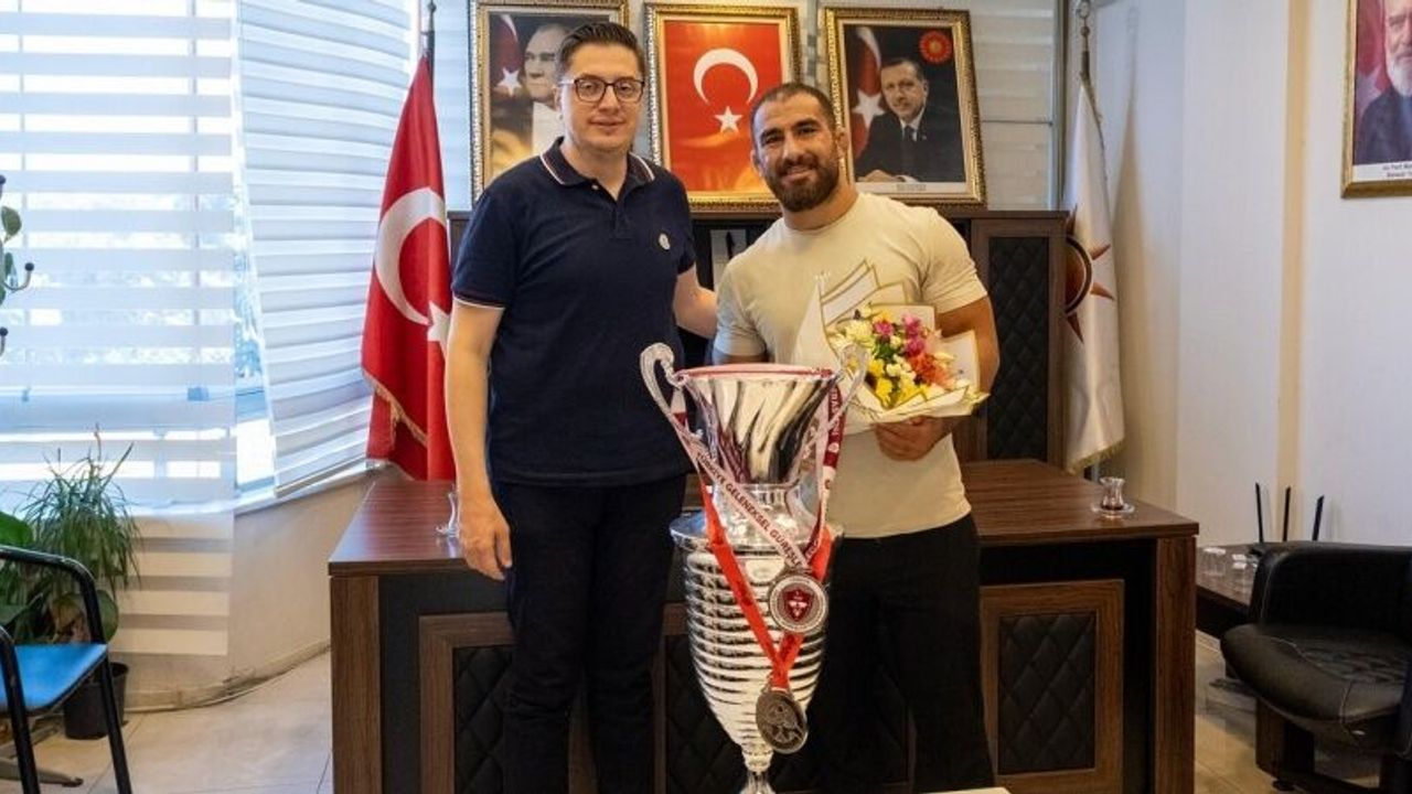 Ziyarette konuşan İlçe Başkanı Sözcüer, “Feyzullah kardeşimizin elde ettiği başarılar bizleri son derece mutlu ediyor. Kendisine başarılarla dolu bir spor kariyeri diliyor, yeni şampiyonluklar temenni ediyoruz. Güreş gibi ata sporumuzda böylesine değerli bir isme sahip olmak, ilçemiz adına büyük bir kazanımdır,” ifadelerini kullandı.