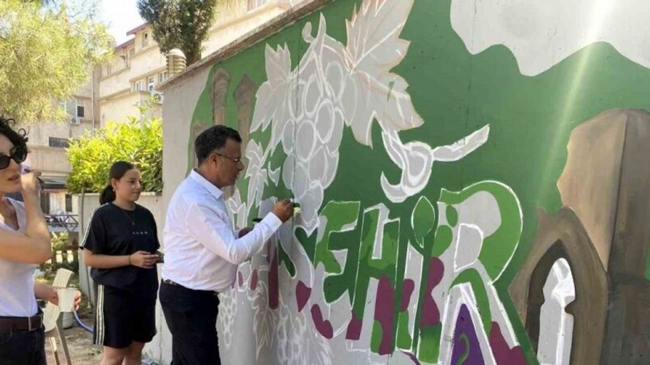 Kahramanmaraşlı Ankara Güzel Sanatlar Lisesi 12’nci sınıf öğrencisi Bengisu Polat, Alaşehir’e yaptığı ziyaret sırasında Alaşehir Kongre Parkı duvarına çizdiği resimlerle ilçenin tarihi, kültürel ve yöresel değerlerini anlattı.