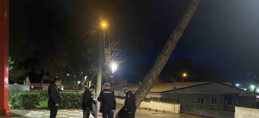 Olay, gece saatlerinde Alaşehir’in Yenice Mahallesi Kuvayı Milliye Caddesi üzerinde, Kongre Parkı önünde meydana geldi. Kongre Parkı ile Adliye Sarayı arasında kalan bölümde bulunan yaklaşık 50 yıllık çam ağacı, fırtınanın etkisiyle kökünden yan yattı.