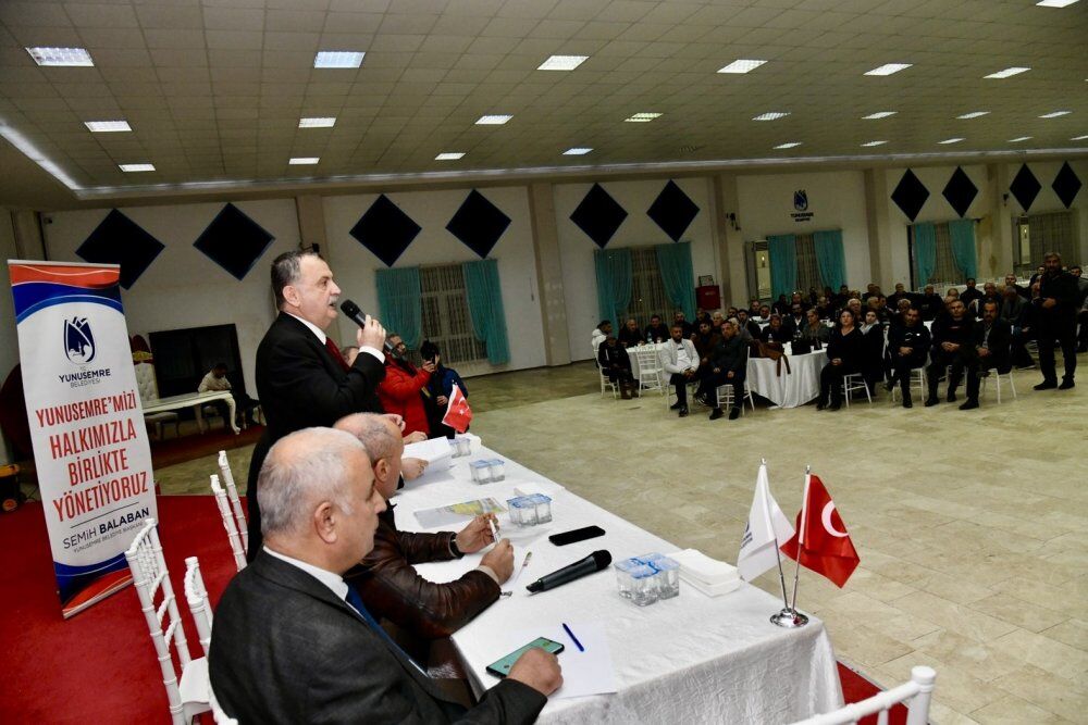 ‘Yunusemre’yi Birlikte Yöneteceğiz’ sloganı ile çalışmalarını sürdüren Yunusemre Belediye Başkanı Semih Balaban, vatandaşların sorunlarını ve taleplerini dinlemek, ortak akıl çerçevesinde çözüm yolları üretmek amacıyla ‘Halk Buluşmaları’na devam ediyor. Bu noktada Başkan Balaban yıllardır sorunlarına çözüm bulamayan Muradiye Mahalle’si sakinleriyle Yunusemre Belediyesi’ne ait Muradiye Sosyal Tesisleri’nde biraraya geldi. Düzenlenen programa Başkan Balanban’a CHP Yunusemre İlçe Başkanı Av. Mehmet Arslan, Manisa Büyükşehir Belediyesi Muhtarlık İşleri Daire Başkanı Mehmet Çelebi, Yunusemre Belediye Başkan Yardımcıları, Yunusemre Belediye Meclisi Meclisi CHP Grup Başkan Vekili Erdinç Yavaşlı, belediye meclis üyeleri ve CHP Muradiye Komisyonu Üyeleri ile mahalle sakinleri katıldı.