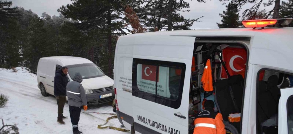 İhbar üzerine harekete geçen 5 kişilik Demirci Belediyesi Arama Kurtarma Timi, 45 kilometre mesafede zorlu arazi ve olumsuz hava şartlarına rağmen bölgeye ulaştı. Mahsur kalan avcıların aracı, halat yardımıyla çekilerek bulunduğu yerden çıkarıldı.