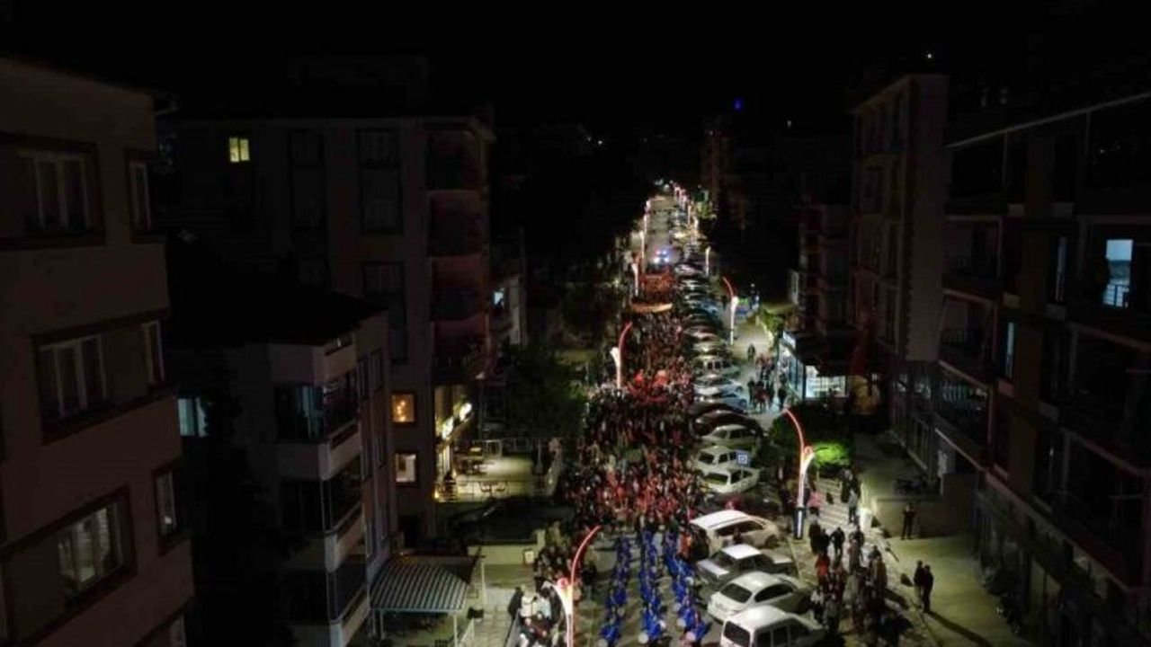 Demirci Prestij Caddesi Hükümet Konağı önünden başlayan fener alayı Gevher Nesibe Mesleki ve Teknik Anadolu Lisesi öğrencilerinden oluşan bando takımı eşliğinde Atatürk anıtına kadar devam etti.