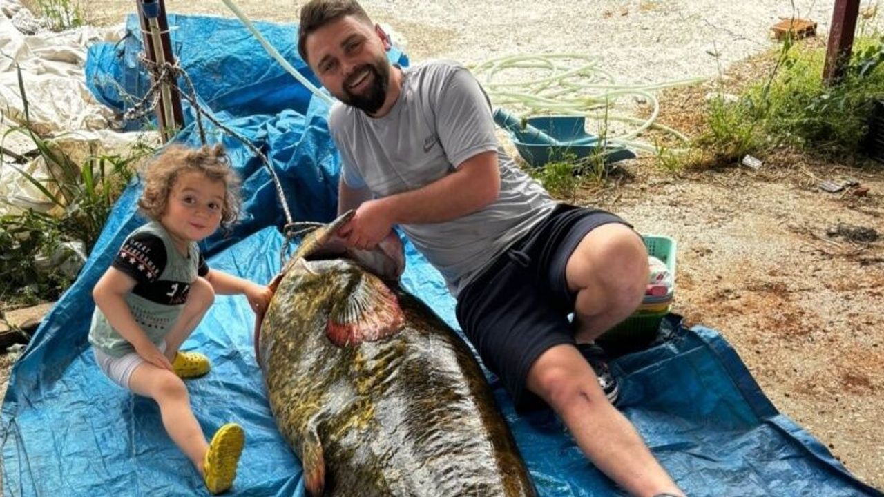 Manisa’nın Köprübaşı ilçesi Çarıklar Mahallesi’nden Onur Doğan (27)  tarafından Demirköprü Baraj Gölünde 114 kilogram ağırlığında 2.15 metre boyunda pintel (sepet) ile dev bir  yayın balığı yakalandı.