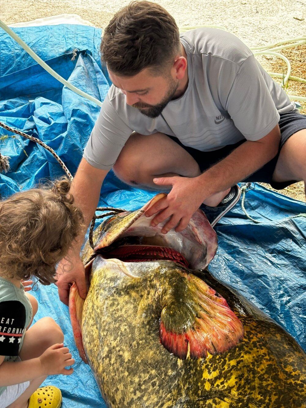 Balıkçı Onur Doğan, "Bu balığı tabi ki de tek başıma çıkarmadım bizim sepet dediğimiz ve bir çok kişinin pinter dediği av malzemesi ile tuttuk gerçekten ilk başta gördüğümde kütük sandım sonra elimle ellediğimde yayın olduğunu anladım aslında alırken aşırı bir zorluk çekmedik doğrusunu söylemek gerekirse çünkü o kadar büyüktü ki hayvan sepetin içinde aşırı hareket edemiyordu yanımda ki yardımcı ile tek seferde kaldırdık” dedi.
