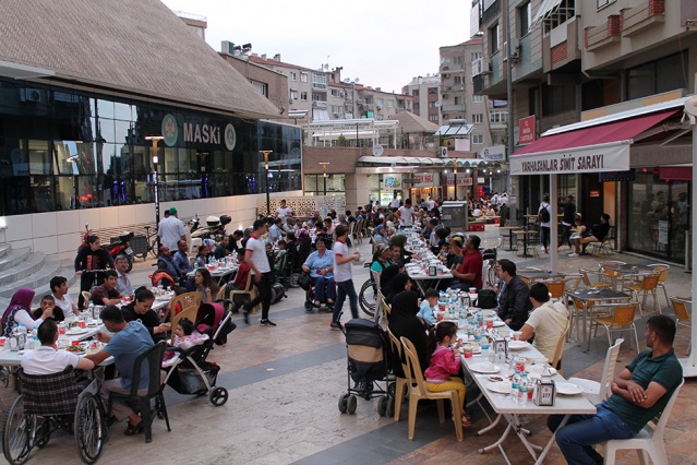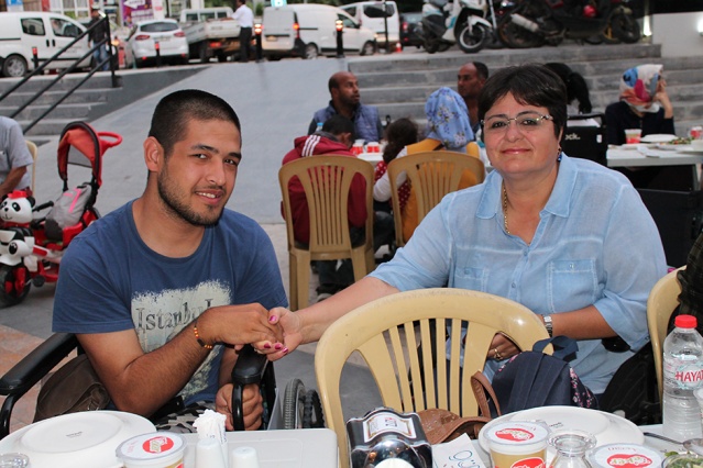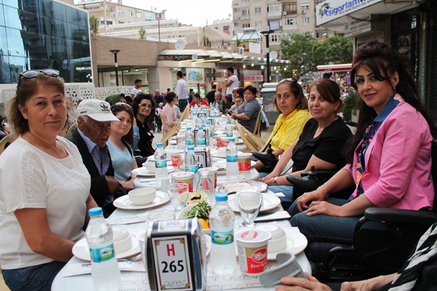İftar yemeğinde bir araya gelen Manisa Bedensel Engelliler Derneği üyeleri hoş sohbet eşliğinde oruçlarını açtılar.