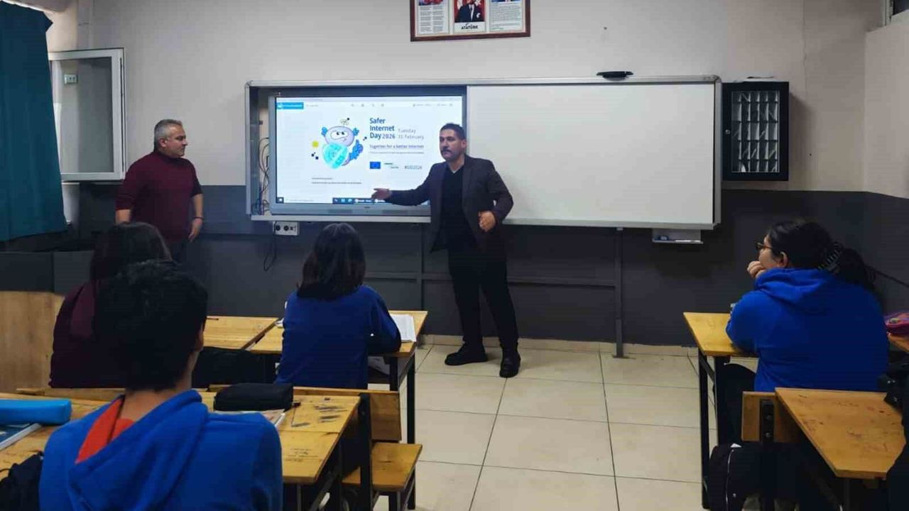 Muğla Gazi Anadolu Lisesi Müdürü Ufuk Uysal, öğrencilerle buluşarak internet güvenliği konusunda doğrudan bilgi verdi. Etkinlik, öğrencilerin dahil olduğu eTwinning projesi 'Roots for Tomorrow' kapsamında gerçekleştirildi.