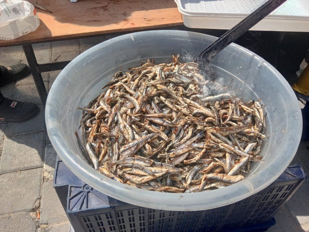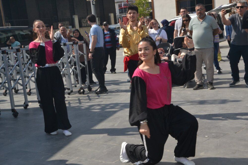 Vatandaşlar hamsiden alabilmek için uzun kuyruklar oluşturdu. Halk oyunları ekibi horon tepti, halk oyunları oynadı.