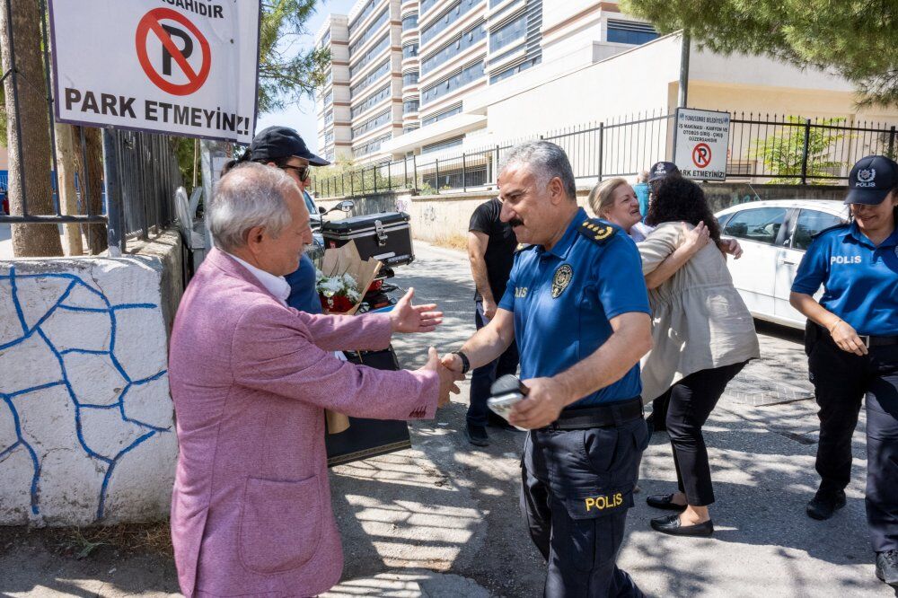Şehit Komiser Ali Osman Sarıçalı’nın öğretmen olan eşi Çimen Sarıçalı’nın görev yaptığı Mehmet Suphi Egemen İlkokulu’na giden İl Emniyet Müdürü Aktaş ve eşi, Okul Müdürü Mustafa Çalık ve Çimen Sarıçalı’yı ziyaret ederek çiçek takdim etti.