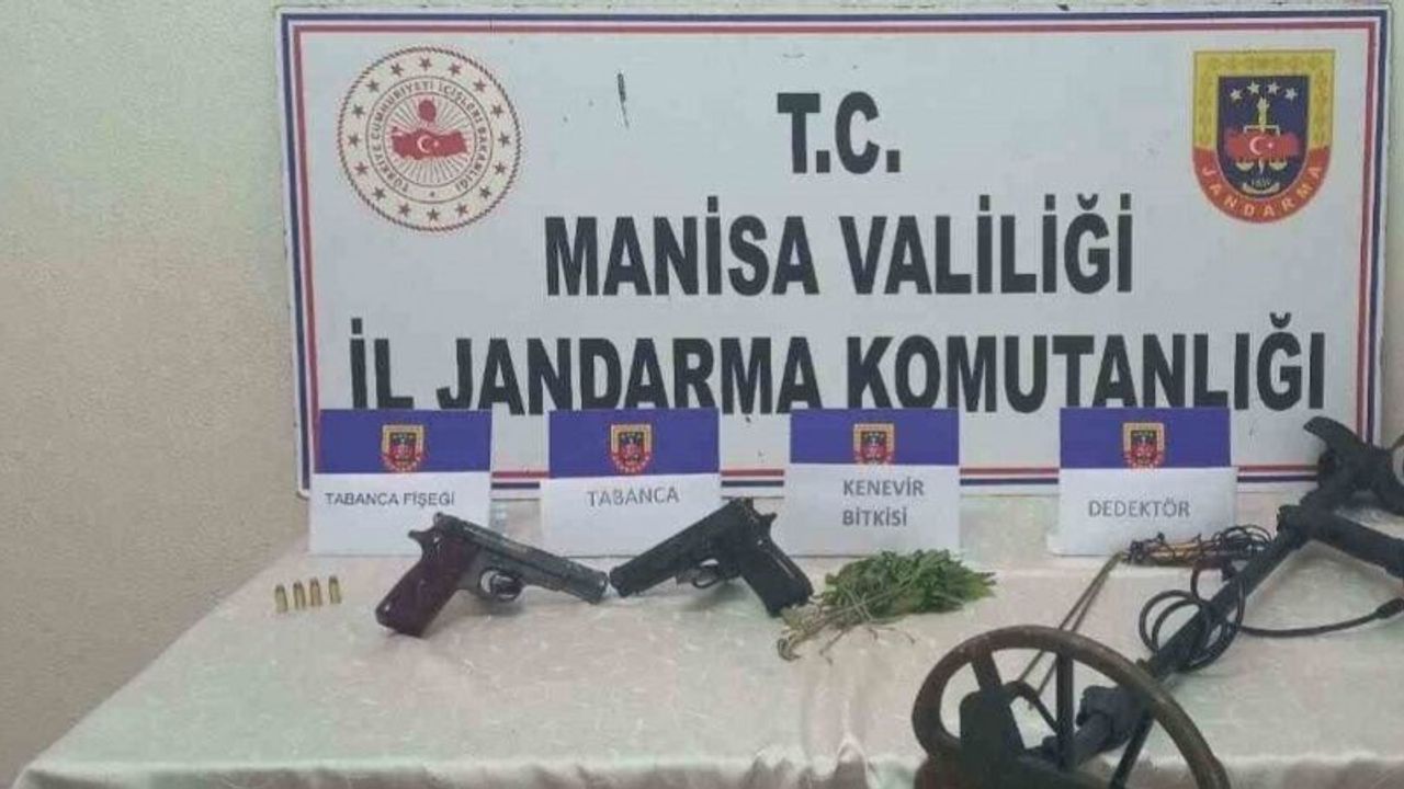 Manisa’nın Akhisar ilçesinde bir şahsın ikametinde ve arazisinde jandarma ekipleri tarafından yapılan aramada yasadışı kenevir yetiştirdiği ve kaçak kazı yaptığı belirlenirken, şahıs 2 ruhsatsız tabanca ile suçüstü yakalandı.