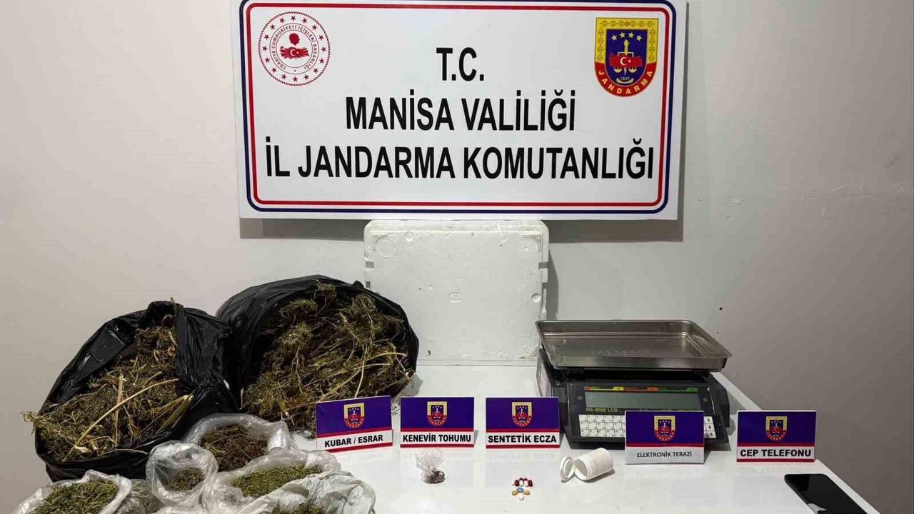 Manisa'nın Sarıgöl ilçesinde, M.İ. (34/E) isimli şahsın uyuşturucu imal ve ticareti yaptığı duyumu alınması üzerine şüpheli şahsın ikametinde ve eklentilerinde Sarıgöl İlçe Jandarma Komutanlığı ve Alaşehir JASAT unsurlarının ortak yaptığı aramada 2.011 gram kubar esrar, 6 gram kenevir tohumu, 1 adet elektronik terazi, 9 adet sentetik ecza hapı ele geçirildi.