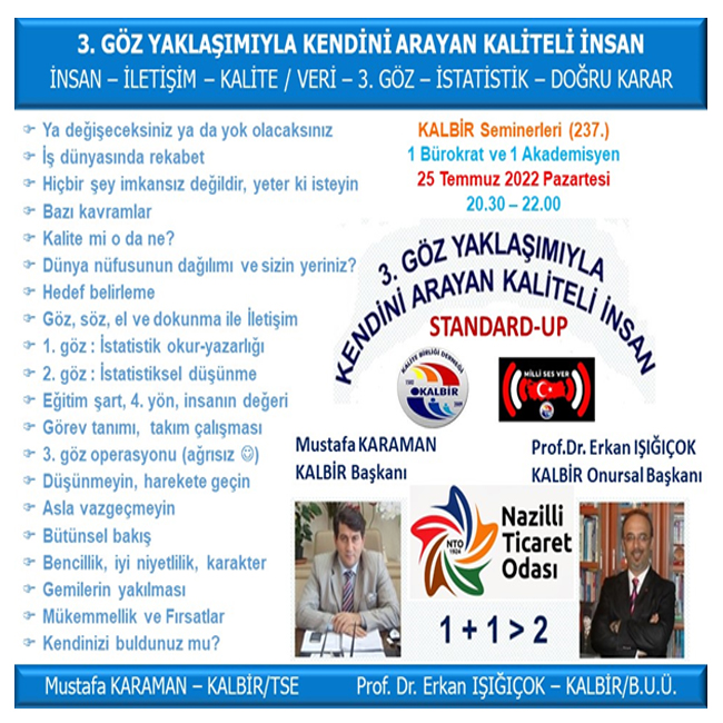 Nazilli Ticaret Odası meclis üyelerine ve katılımcılara "3.Göz istatistik Yöntemiyle Kendini Arayan Kaliteli İnsan" Eğitimini vereceğiz.