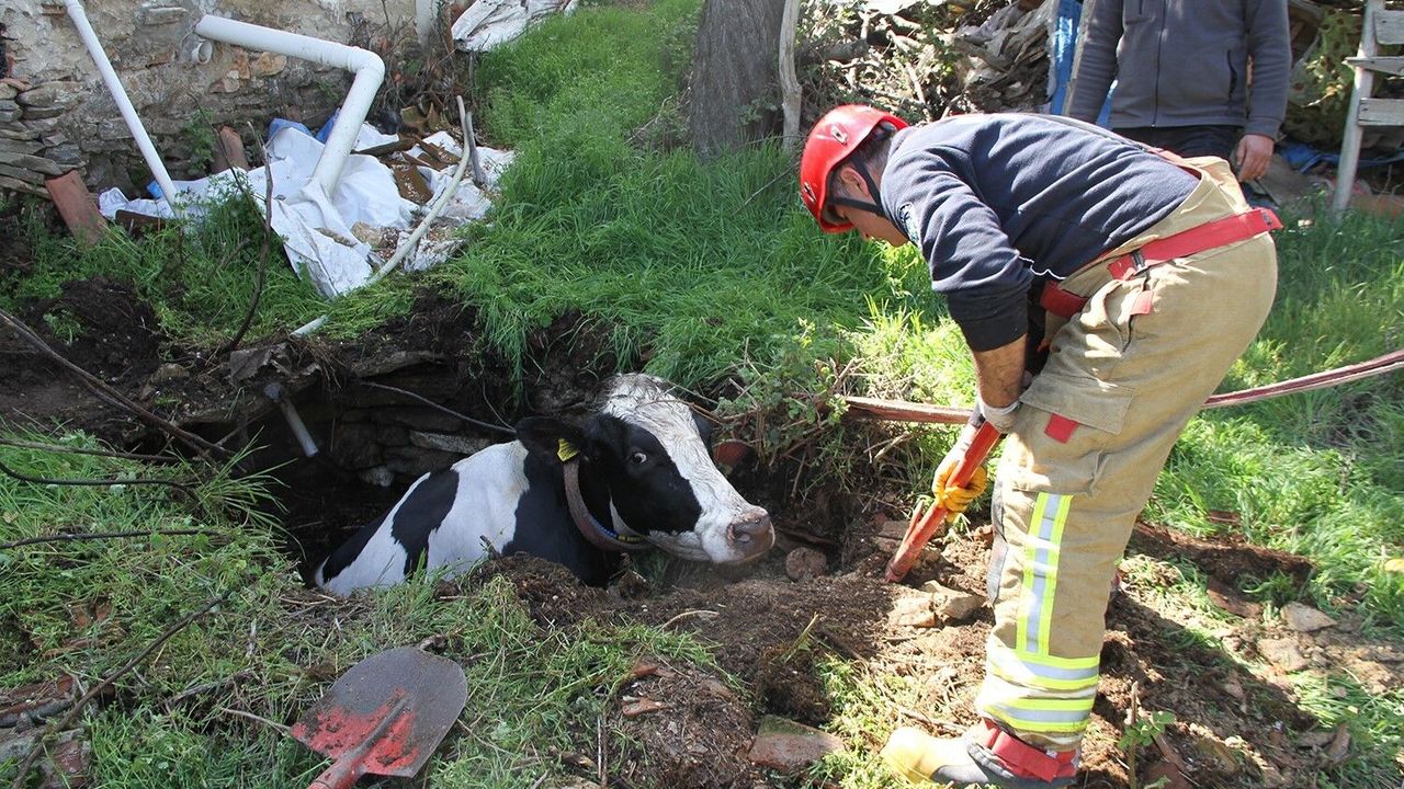 Öte yandan, ineğin kurtarıldığı anlar çevredeki vatandaşlar tarafından ilgiyle izlenirken, zaman zaman renkli görüntüler de ortaya çıktı. İneğin sahibi Bahattin Sarı ve ailesi, büyükbaş hayvanlarını canlı olarak kurtaran itfaiye ekiplerine teşekkür etti.