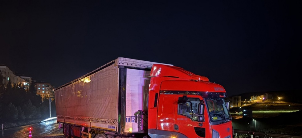 Manisa’nın Kula ilçesinde yağışlı havanın da etkisiyle kayganlaşan yolda sürücüsünün direksiyon hakimiyetini kaybettiği tır, refüje çıktı. Yola fırlayan taşlar sonucu 2 otomobil zarar görürken, kazada yaralanan olmadı.