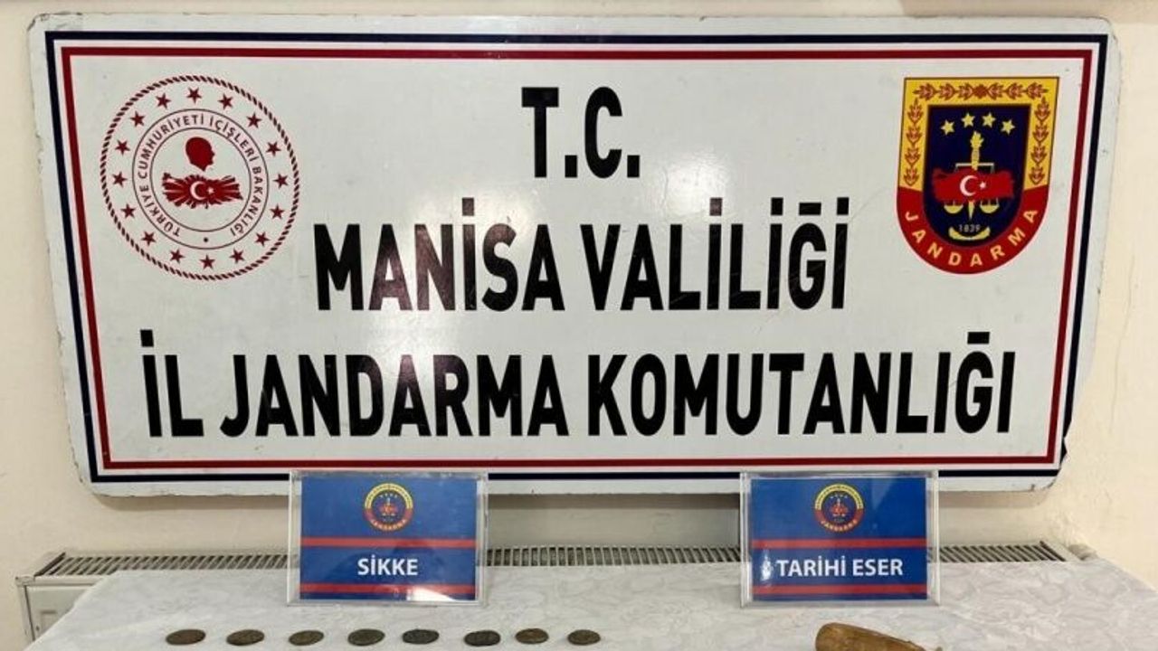 Manisa’nın Salihli ilçesinde jandarma ekipleri tarafından bir evde yapılan arama da çok sayıda tarihi eser ele geçirildi.