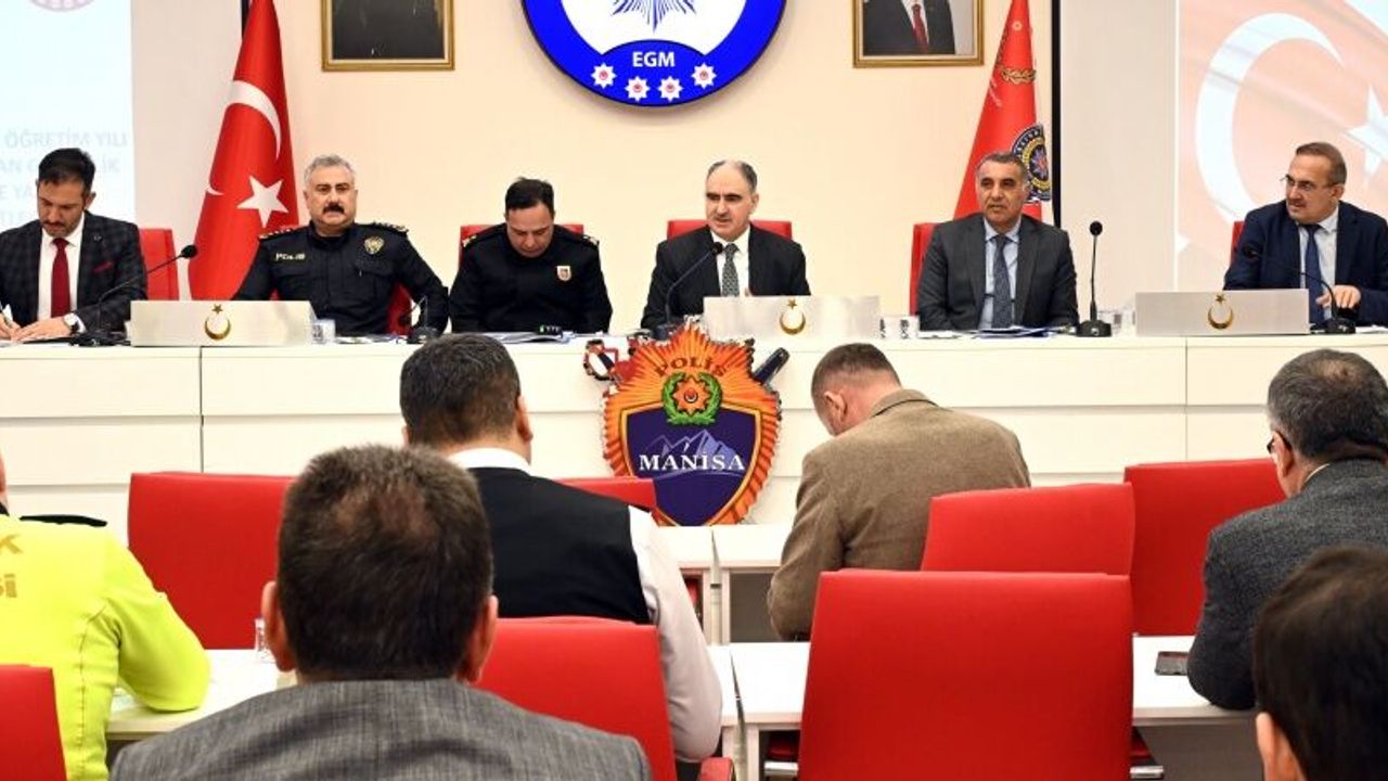 Manisa’da çocukların ve gençlerin güvenli bir ortamda eğitim almaları amacıyla önemli bir toplantı gerçekleştirildi. Vali Vahdettin Özkan başkanlığında düzenlenen "Eğitim Güvenliği Toplantısı"na İl Emniyet Müdürü Fahri Aktaş, protokol üyeleri, kurum yetkilileri, okul müdürleri, okul aile birliği başkanları ve okul koordinasyon görevlileri katıldı.