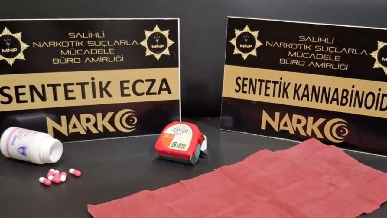 Uyuşturucu madde ticareti yapan şahıslara yönelik çalışmalarına devam eden Manisa İl Emniyet Müdürlüğü KOM Şube Müdürlüğüne bağlı Salihli Narkotik Suçlarla Mücadele Büro Amirliği ekipleri ve Çarşı Mahalle Bekçilerinin sokak çalışmaları kapsamında durumundan şüphelendikleri S.T.’yi(21) durdurup arama yaptı. Şüphelinin yapılan üst aramasında A4 kağıda emdirilmiş 3 bin 200 içimlik uç bonzai, 6 adet uyuşturucu hap ve şerit metre ele geçirildi. Olayla ilgili S.T. gözaltına alındı.