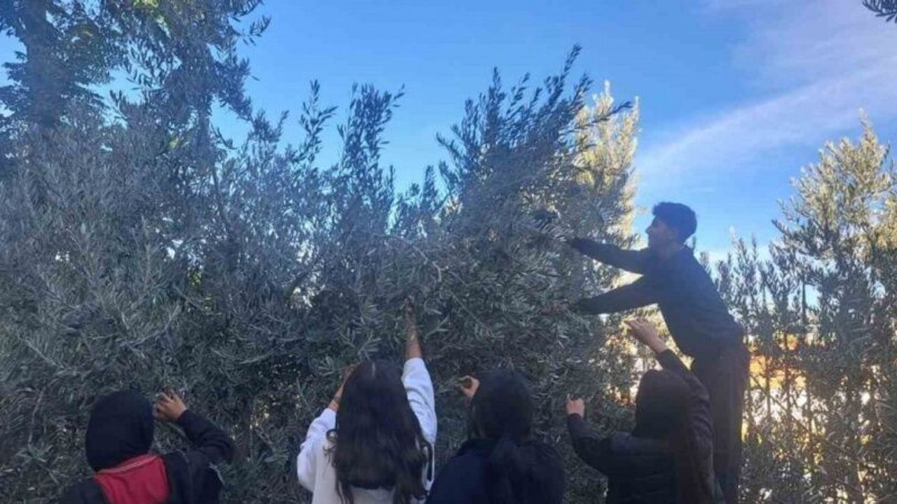 Öğrenciler zeytin hasadıyla üretim bilincini öğreniyor