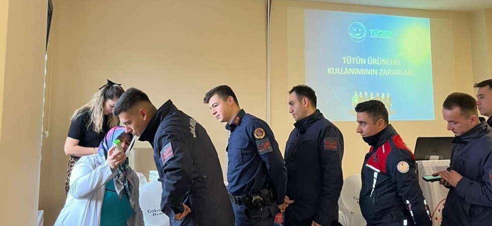 Programda Sağlıklı Hayat Merkezi Sorumlu Hekimi Uzm. Dr. Merve Türkan tarafından jandarma personeline sigaranın zararları ve sigarayı bırakmanın faydaları hakkında eğitim verildi. Etkinlik kapsamında karbonmonoksit ölçümleri yapıldı, değeri yüksek çıkan ve sigarayı bırakmak isteyen personel, sigara bırakma polikliniklerine yönlendirildi.