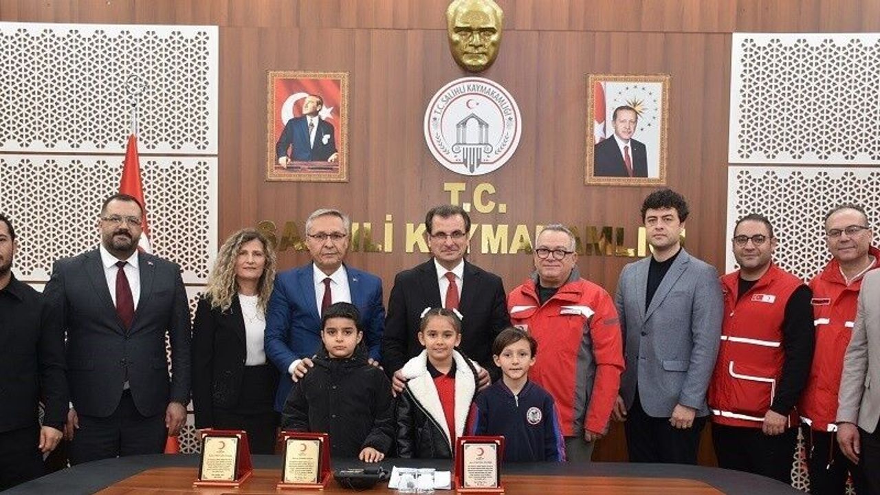 Manisa’nın Salihli ilçesinde 29 Ekim-4 Kasım Kızılay Haftası etkinlikleri kapsamında düzenlenen "Salihli Sana Kanım Feda" kan bağışı kampanyasında dereceye giren öğrenciler, Salihli Kaymakamı Ali Güldoğan’ı makamında ziyaret etti.