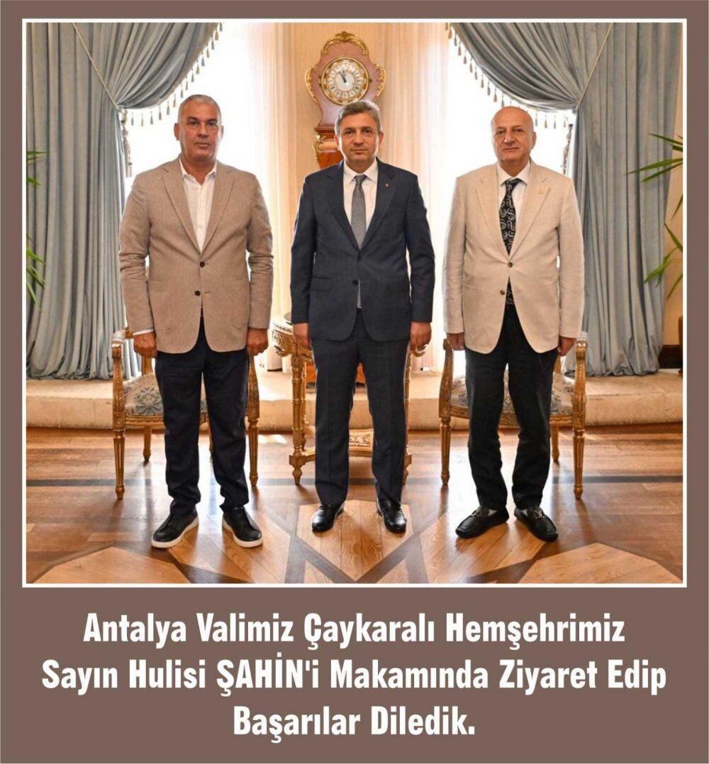 Başkan Ahmet Köksal, ziyaretin sonunda Vali Şahin’e Trabzonluların selamlarını ileterek, Antalya’da yürüttüğü görevinde kolaylıklar temennisinde bulundu.